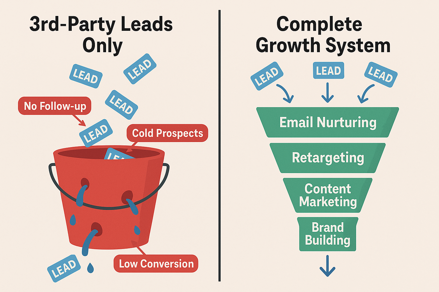 The uncomfortable truth is that relying solely on 3rd-party lead generation is like building your business on quicksand. It might work in the short term, but it’s not a foundation for sustainable growth.